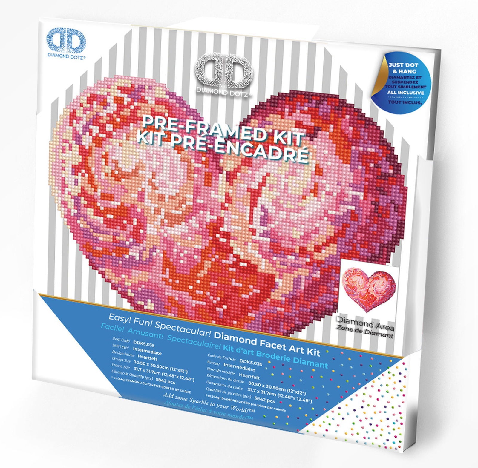 Fall in love with the simple beauty of the Diamond Dotz Heartfelt with Frame kit a stunning pre-framed artwork that radiates warmth and affection. At the center is a swirling heart in rich shades of pink red and white layered against crisp grey and white vertical stripes for a striking modern look. Whether you're crafting it for yourself or gifting it to someone special this intermediate-level project offers a meaningful and creative way to express love. Ready to display straight from the box it’s the perfect piece to add a heartfelt sparkle to your space.