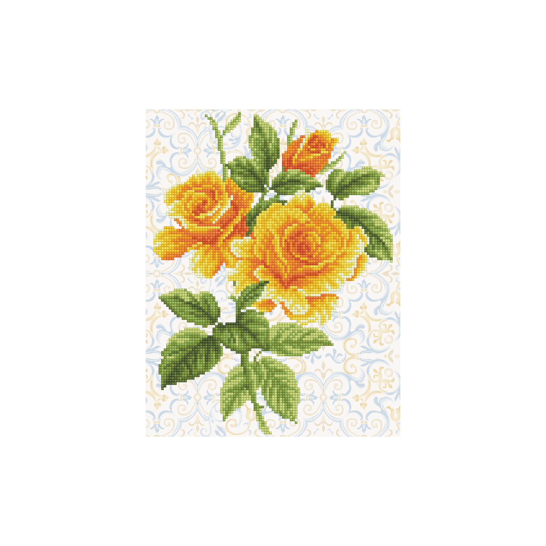 Yellow Rose Bouquet with Frame celebrates joy and friendship with a collection of glowing yellow roses. This compact flower diamond art kit features round-faceted diamonds and full-drill fabric all housed in a matching frame for instant enjoyment.