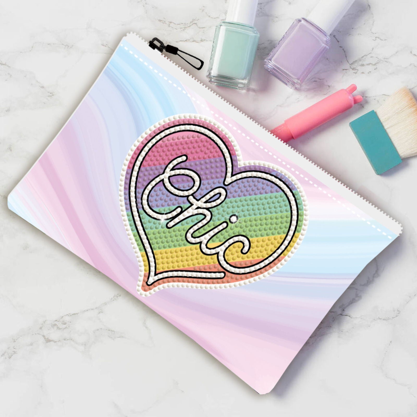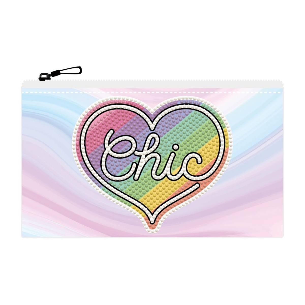 Style meets sparkle in the Diamond Dotz Chic Zipper Pouch! This pastel-perfect diamond art bag features a heart-shaped rainbow design with the word "Chic" in elegant script - perfect for storing glam essentials. With round Dotz partial coverage and a beginner-level layout this fashionable pouch makes a great starter project or gift. It’s a colorful and convenient addition for fans of Diamond Painting Kits for Adults Diamond Art Kits and stylish diamond painting purses.