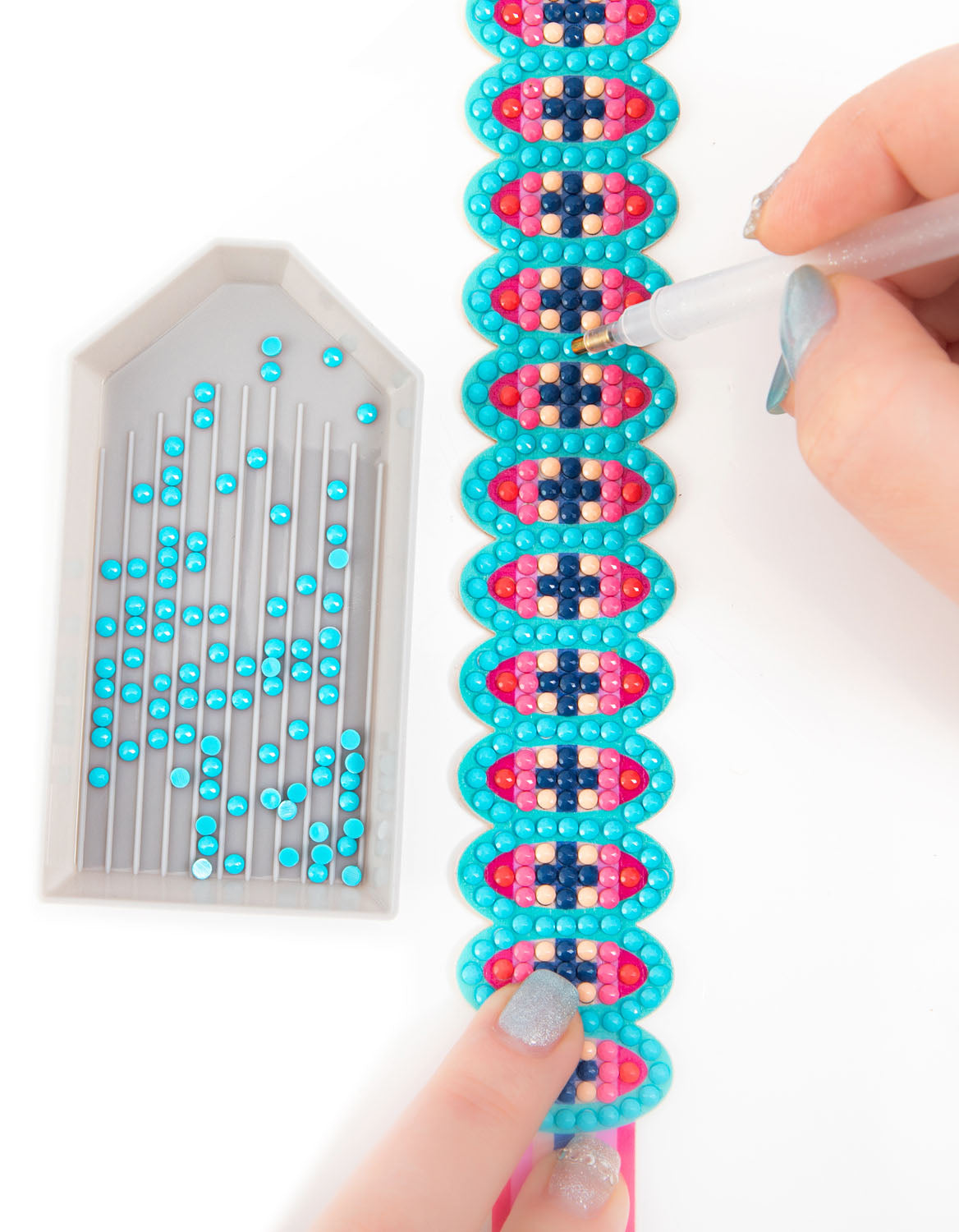Add a little celestial sparkle to creative play with the Moon Gems diamond art bracelet kit. Featuring a beautifully shaped design with flowing outlines, this kid-friendly bracelet offers a fun twist on classic bracelet-making kits. With full coverage and faceted round DOTZ® that catch the light, young artists can create a shimmering accessory they’ll be proud to wear. Perfect for beginners, this project is great for rainy afternoons, screen-free fun, birthday parties, or gifting, turning crafting time into a magical, hands-on experience.