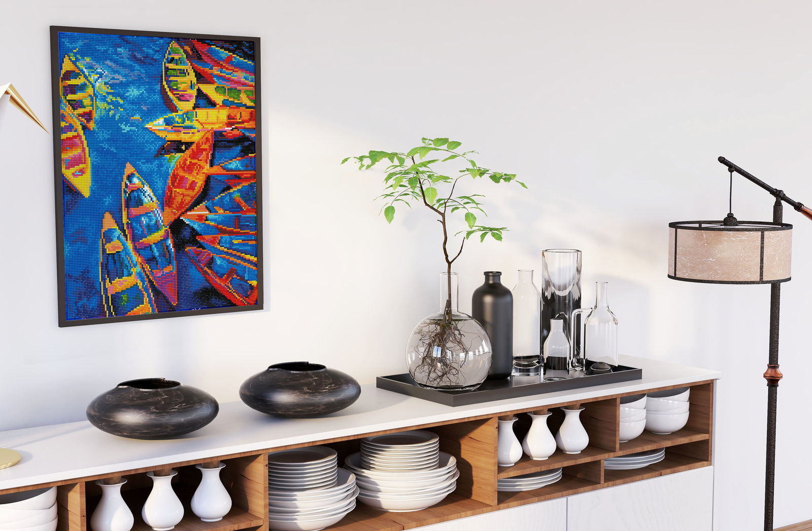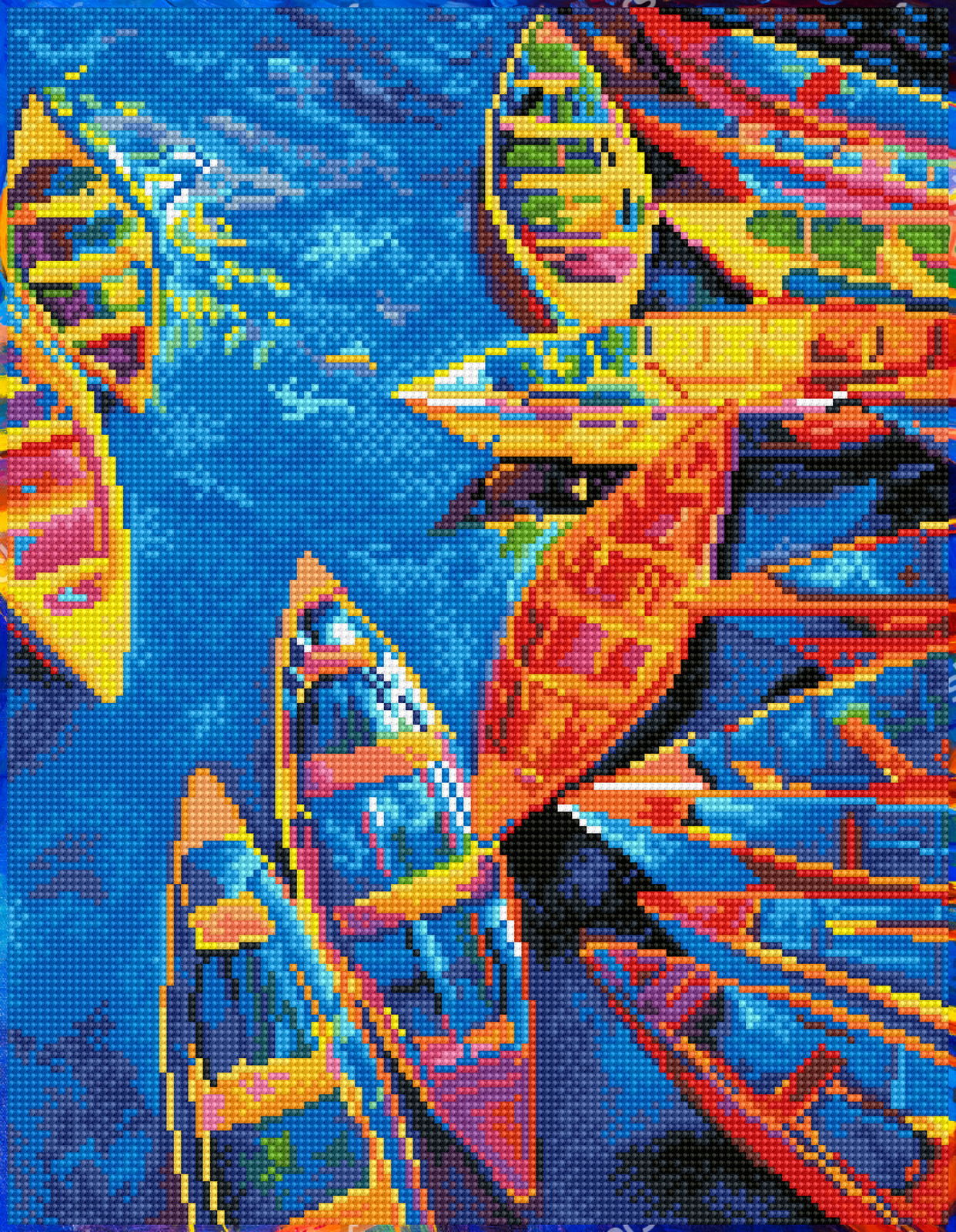 Capture a bold artistic take on a coastal view in the Diamond Dotz Blue Bay diamond painting landscape. Vivid boats swirl in rich blue waters in this modern Diamond Art Kit. Full coverage and square-shaped diamonds ensure precision texture and color intensity. This is a perfect kit for those seeking Diamond Painting Kits for Adults Diamond Art Kits or an expressive vibrant landscape diamond art piece.