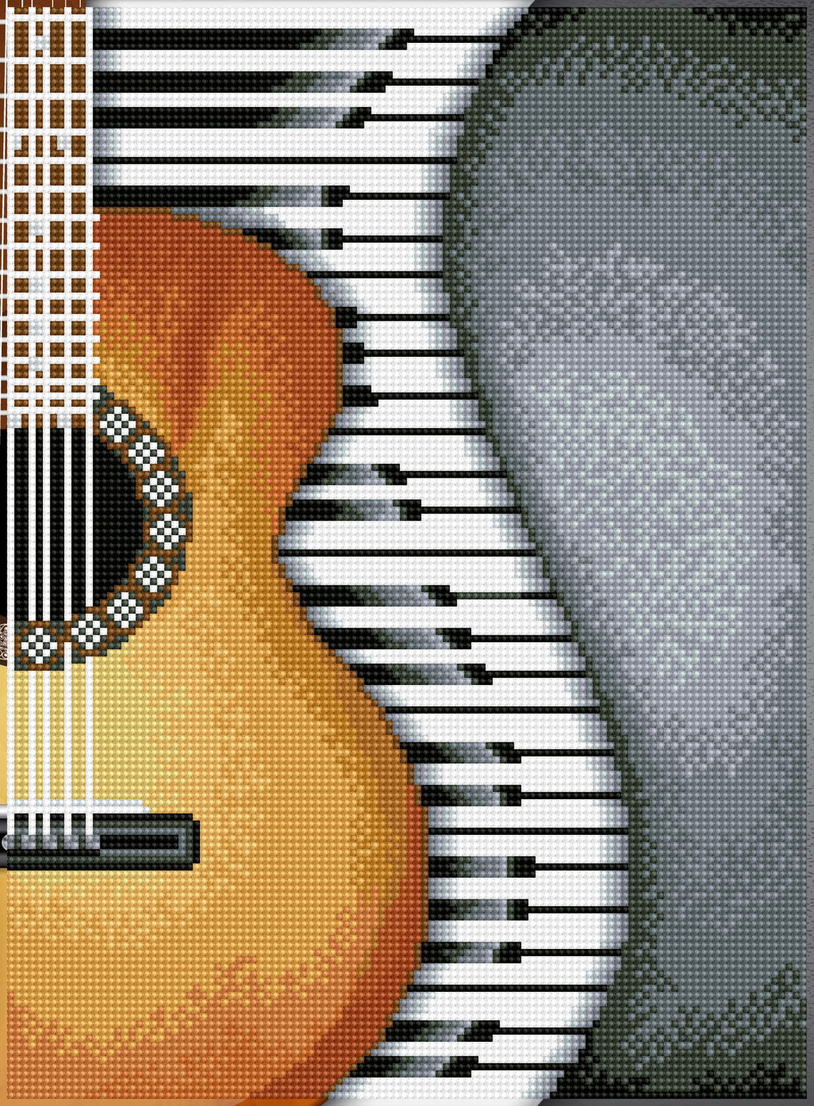 Celebrate the harmony of music and art with the Classical Jazz Pre-Framed Diamond Painting Kit. This stunning square design showcases a warm acoustic guitar and flowing piano keys in a grayscale wave creating contrast and rhythm in every Dotz. Featuring Diamond Dotz Squares and full coverage this framed kit is ideal for fans of Diamond Art Kits and collectors of guitar diamond art.