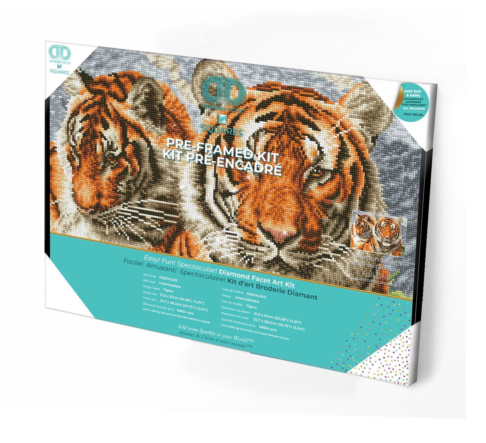 This version of Diamond Dotz Tigers is part of the Quick & Easy Kit series but still features the same striking tiger duo in brilliant detail. Crafted with round-faceted diamonds on a full-drill printed canvas it's a fantastic balance of beauty and approachability within our Diamond Art Kits.