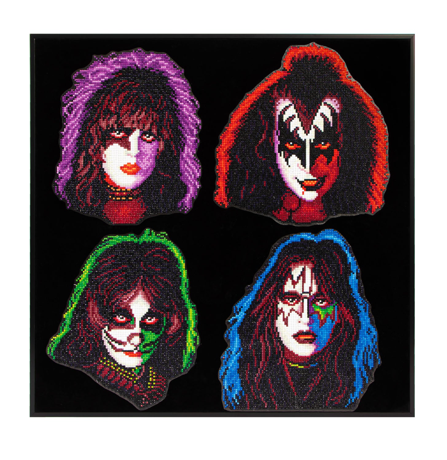 Celebrate one of the most iconic eras in rock history with the KISS 1978 diamond art kit, featuring all four legendary band members in their unforgettable style. Set against a dramatic flocked background, each portrait glows with bold color and intensity as more than 27,000 round DOTZ® bring their larger-than-life personalities to vivid detail. This advanced, partial-coverage project is a must-have for collectors, superfans, and anyone ready to craft a show-stopping tribute to KISS.