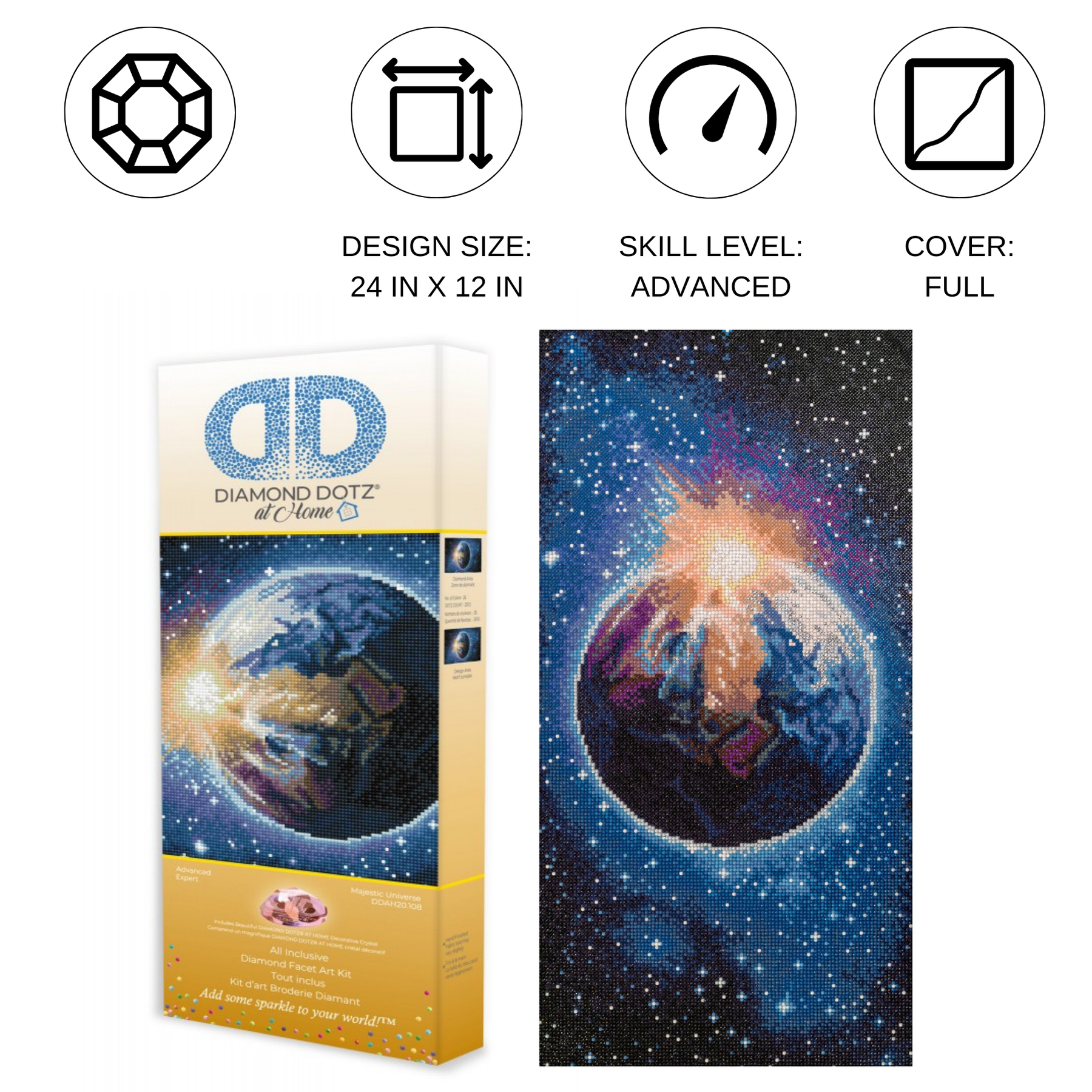 Celebrate the beauty of our planet in the cosmos with the Diamond Dotz Majestic Universe kit. This awe-inspiring space diamond painting showcases a radiant Earth bursting with color and light surrounded by galaxies and stardust. Designed for advanced creators this full coverage project uses round Dotz to capture the magic of the cosmos in brilliant detail. A striking choice for fans of Diamond Painting Kits for Adults Diamond Art Kits and radiant diamond art space masterpieces.