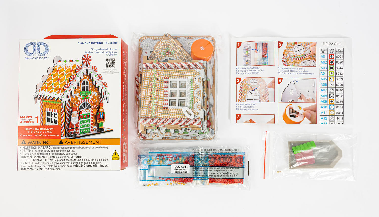 Build your own sparkling holiday centerpiece with the Gingerbread House 3D diamond painting kit! This delightful project lets you dot and assemble a charming gingerbread house decorated with candy, icing, and festive details. Every shimmering gem helps you bring the classic holiday favorite to life, no baking required! Perfect as a tabletop display, mantle decoration, or gift, it’s a joyful way to craft a little holiday magic.