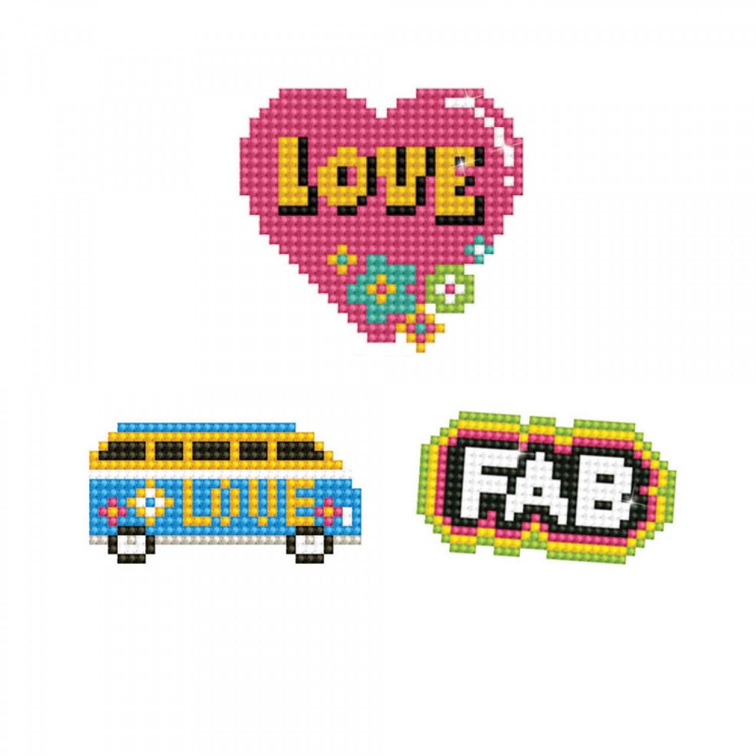 Spread sparkle and positivity with the Dotzies® LOVE 3 stickers multi-pack, a fun and colorful set of three full-drill diamond stickers designed for quick, creative play. Featuring bold, playful designs (including a heart, retro van, and statement word art) each sticker comes to life with faceted round diamonds that shimmer as they catch the light. Easy to complete and endlessly versatile, these stickers are perfect for decorating notebooks, water bottles, craft projects, or sharing a little love wherever you go.