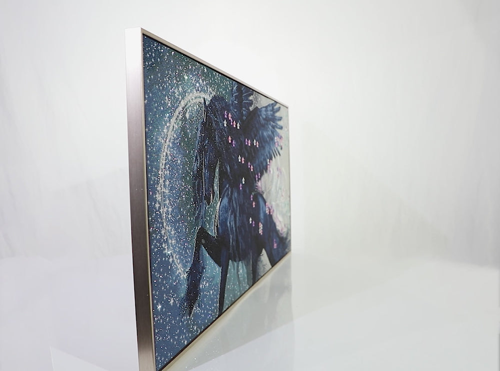 Enter a magical world with the Herald of Spring Diamond Painting Kit part of the premium Masterclass collection by Diamond Dotz. Featuring over 110 000 sparkling round DOTZ this full-coverage masterpiece designed by Laurie Prindle showcases a majestic winged horse galloping through a night sky scattered with cherry blossoms. Designed for advanced artists this kit offers an immersive diamond art experience filled with soft curves and rich detail. Whether you're expanding your diamond painting collection or looking for a showstopping gift this kit delivers the ultimate in luxury and creativity.