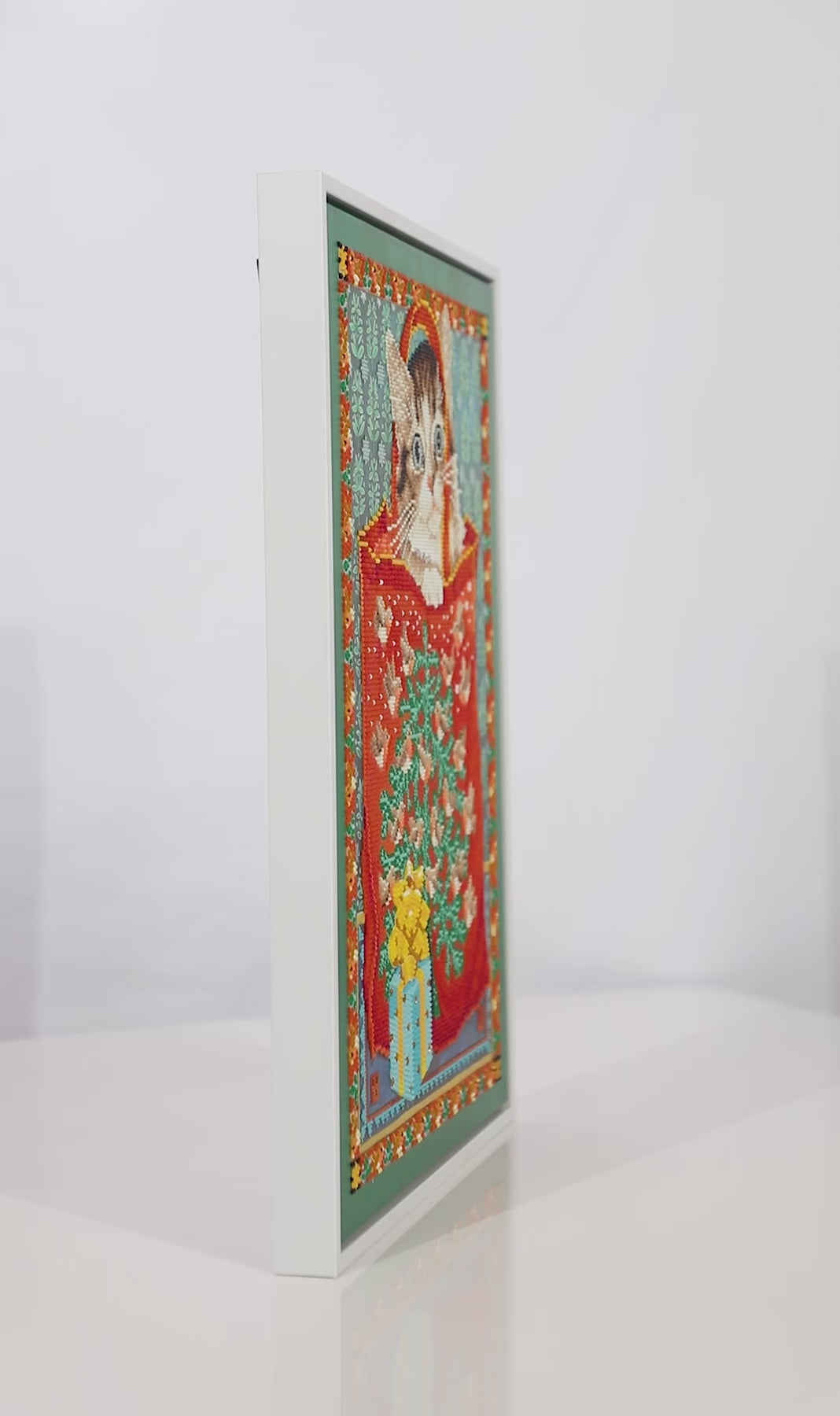 Celebrate the season with the Manuel in the Christmas Robin Bag - Masterclass Diamond Painting Kit featuring a festive cat nestled in a holiday gift bag adorned with robins and a tree. Part of the Diamond Dotz Masterclass series this advanced-level project showcases the realistic and whimsical art of Lesley Anne Ivory using over 19 000 DOTZ and 12 084 Mini DOTZ. Intricate techniques and luxurious materials bring this charming scene to life with soft dotting effects and vivid detail.